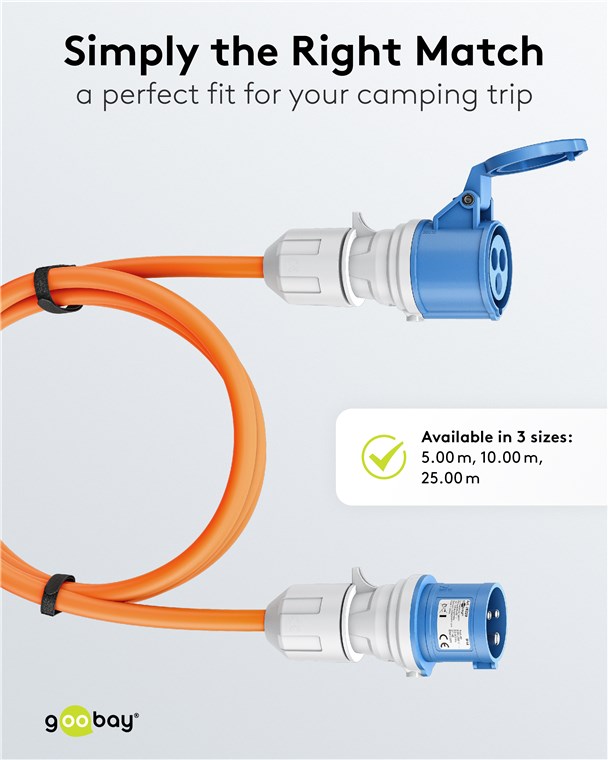 - Einfach verkabelt: Das Verlängerungskabel bietet volle Flexibilität für vorhandene, aber zu kurze CEE-Campingkabel für weiter entfernte Steckdosen