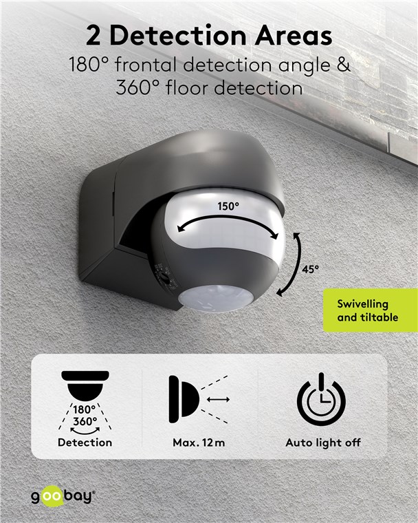 - Doppelt flexibel: Mit 2 Infrarot-Sensoren für die horizontale (180°) und vertikale Detektion (360°). Für die optimale Ausrichtung ist das Kopfgelenk dreh- und neigbar.