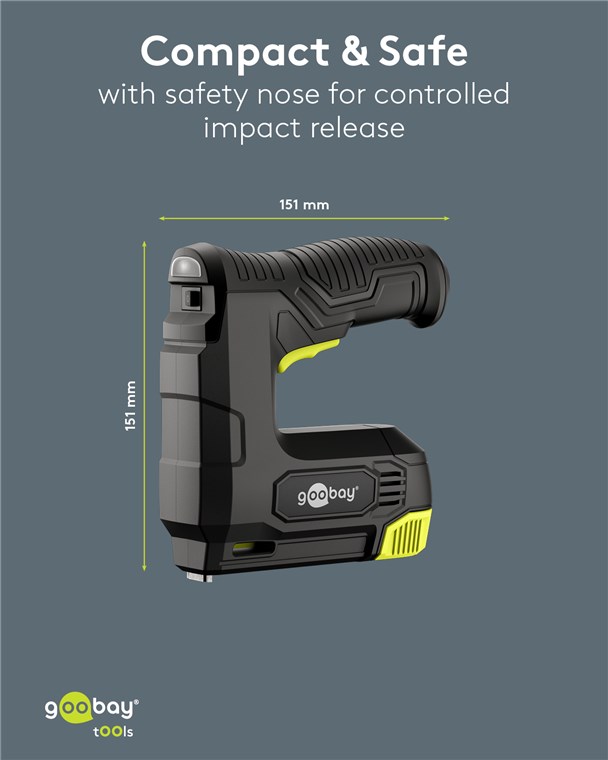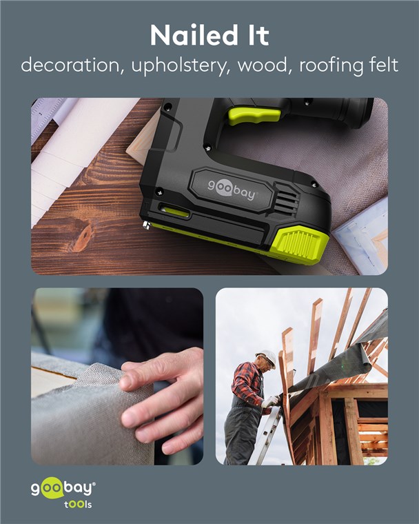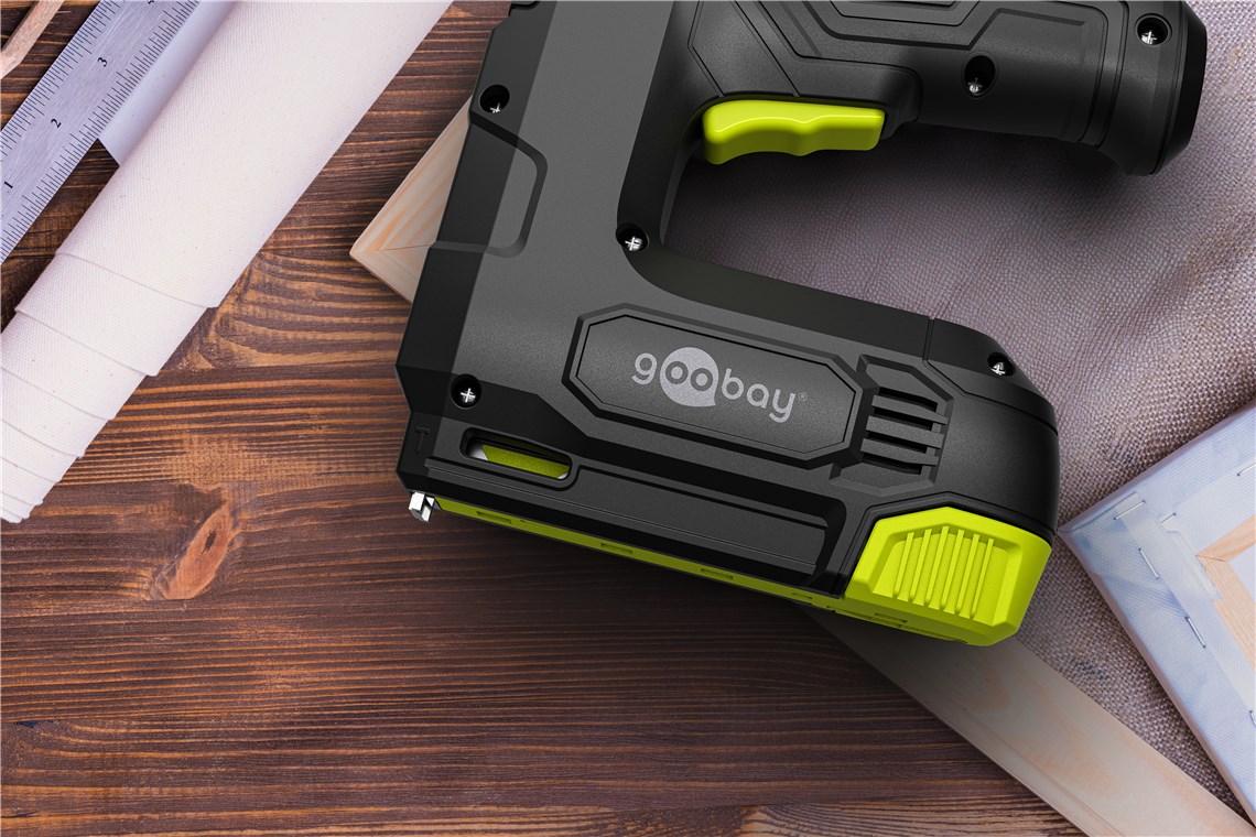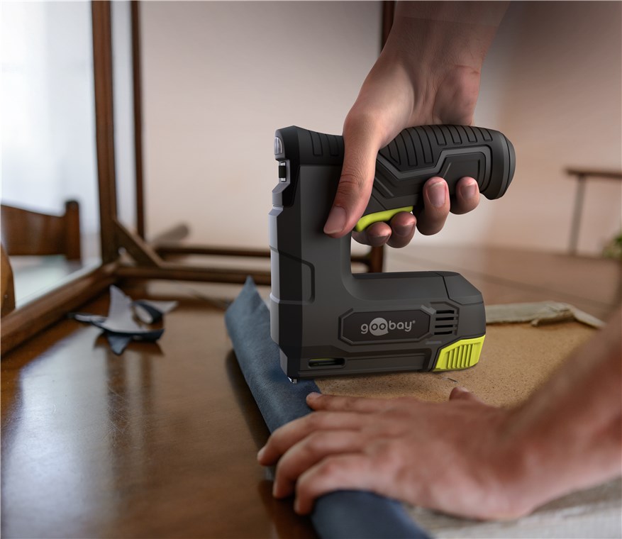 Den Nagel auf den Kopf getroffen: Der Elektrotacker ist der schlagkräftige Helfer bei Möbelreparaturen, Polsterarbeiten und Befestigen von Dämmmaterial oder Sockelleisten. Durch den kabellosen Akkubetrieb ist der Tacker besonders flexibel einsetzbar und sorgt für volle Bewegungsfreiheit.