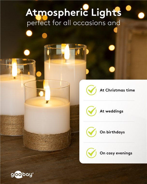 - Die LED-Lichter sind die sichere Lichtlösung ohne Brandgefahr für Mensch und Tier - geeignet für alle Bereiche, in denen echte Kerzen zu gefährlich oder nicht gestattet sind