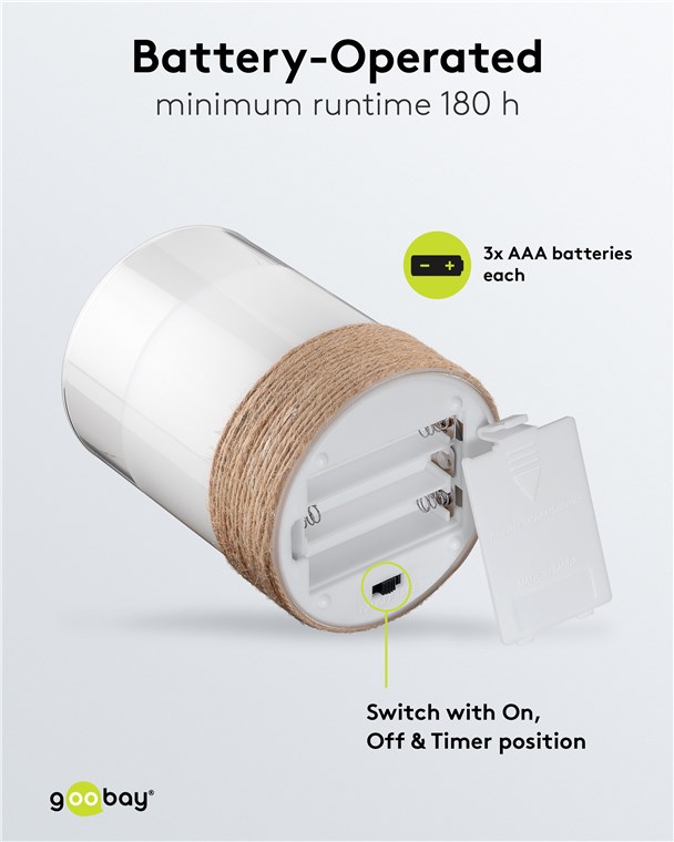 - Mit On-/Off-Schalter und Timerfunktion für ein 6-Stunden-Leuchtintervall (Wiederholung im 24-Stunden-Takt)