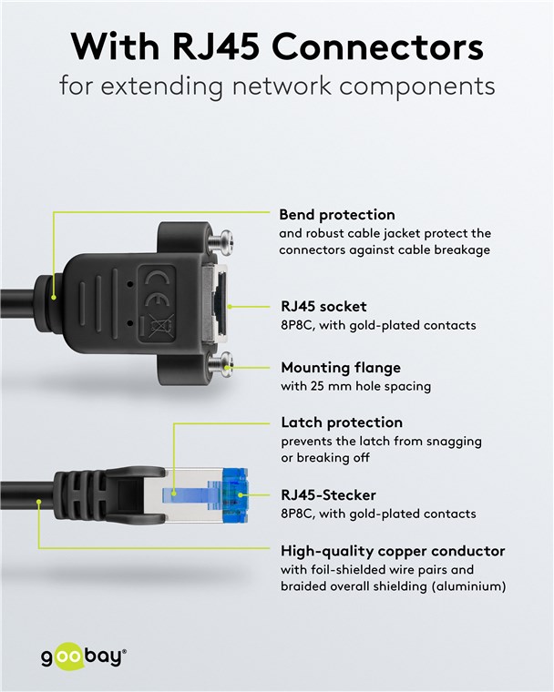 - Doppelt geschirmte LAN-Kabel-Verlängerung mit RJ45-Anschlüssen zur Verbindung von Netzwerk-Komponenten