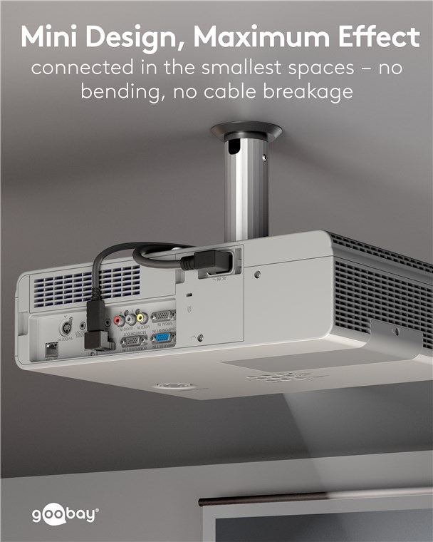 • Der 90°-Winkel des Steckers erlaubt einen abgewinkelten Anschluss: Perfekt auf kleinstem Raum, z. B. an rückwärtigen Gerätebuchsen