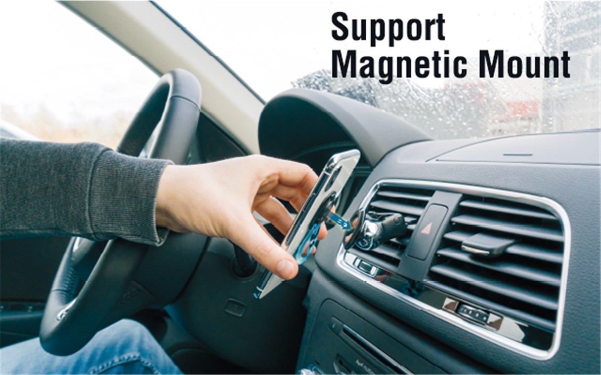 - Durch den Magnet auf der Rückseite wird das Smartphone ganz einfach an der magnetischen Kfz-Handyhalterung befestigt.