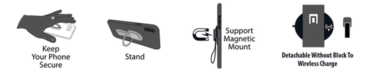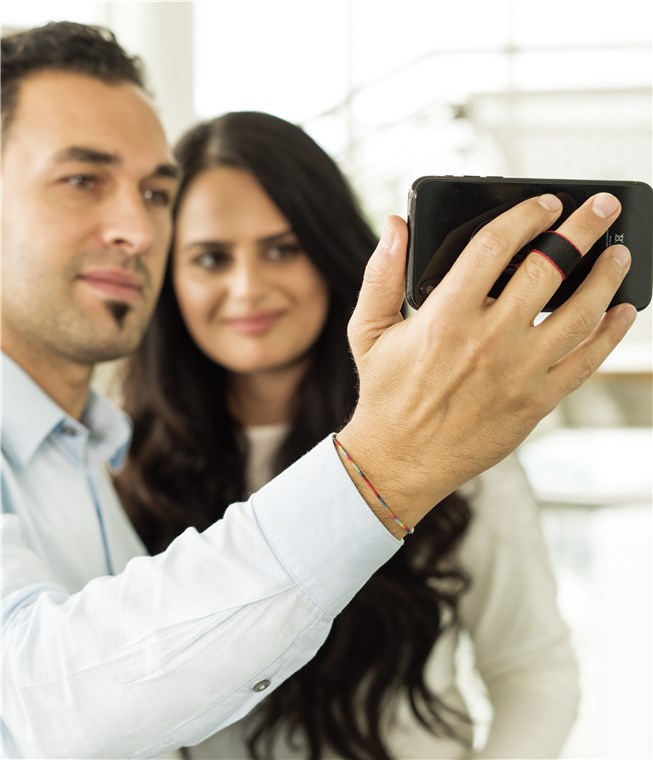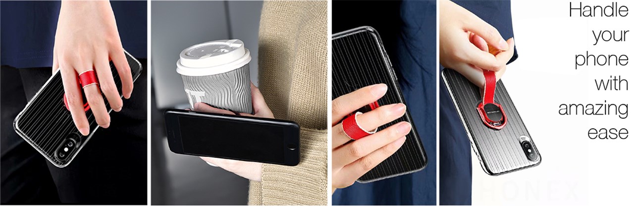 - Der Handy-Fingerhalter wird direkt auf das Smartphone oder die Hülle geklebt und kann wieder rückstandsfrei entfernt werden.