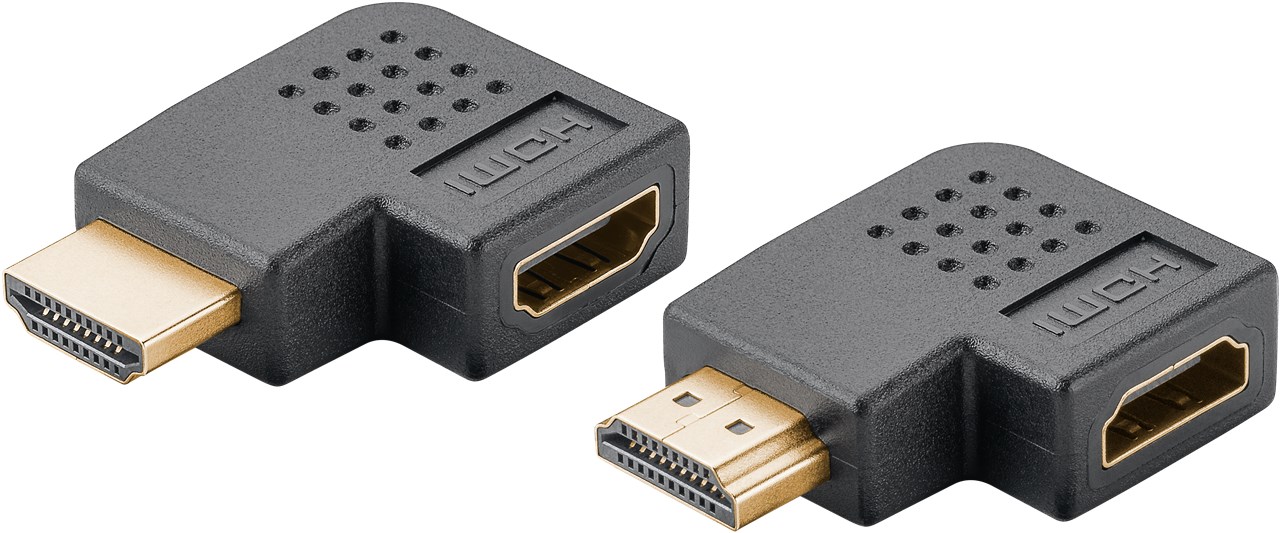 Der abgewinkelte Adapter ist die praktische Lösung, um ein HDMI™-Kabel auch auf engstem Raum anzuschließen, z. B. an der Rückseite von Fernsehern oder seitlich an Laptops. Das Kabel liegt durch den Winkel des Steckers eng am Gerät an, um so ein Abknicken und Kabelbruch effektiv zu vermeiden.