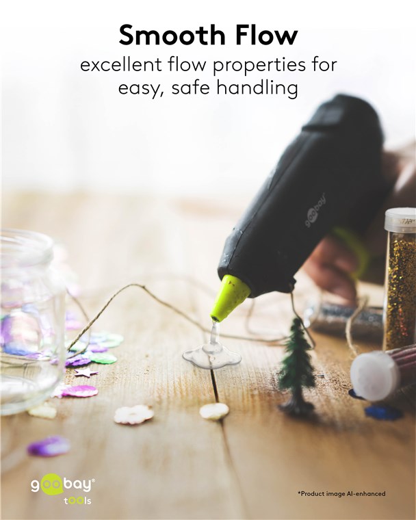 - Für fast unsichtbare Klebestellen: Nach dem Trocknen ist der Heißkleber transparent und damit optisch dezent