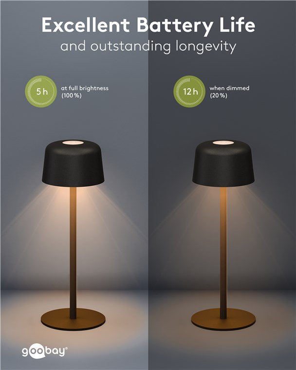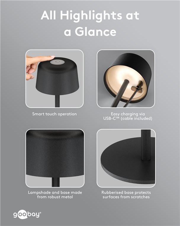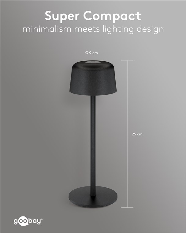 Die kleine Tischlampe veredelt mit ihrem reduzierten, skandinavischen Design jedes Wohnzimmer, Schlafzimmer oder Esszimer und setzt auch auf der Gartenparty ein Style-Statement. Gefertigt aus hochwertigem, massivem Metall, steht die innovative Goobay-Leuchte für Qualität und Langlebigkeit.