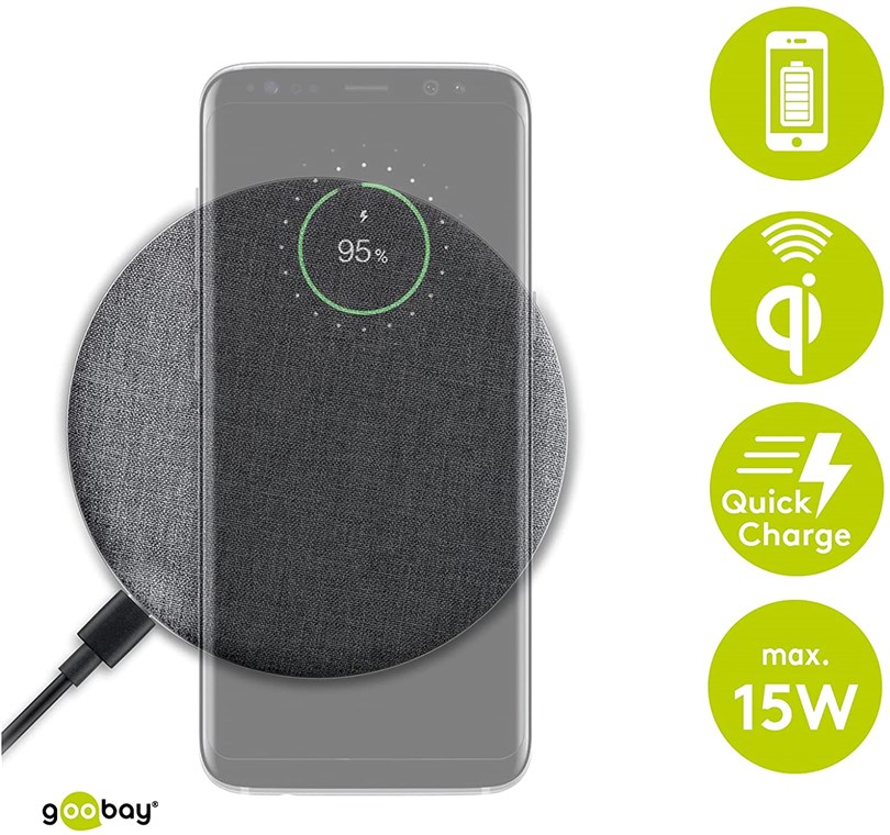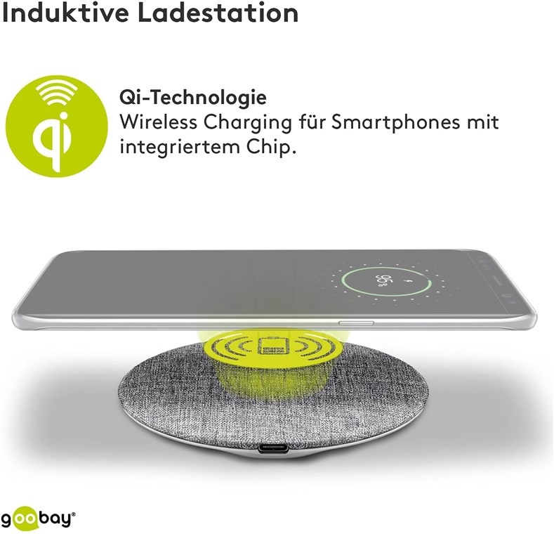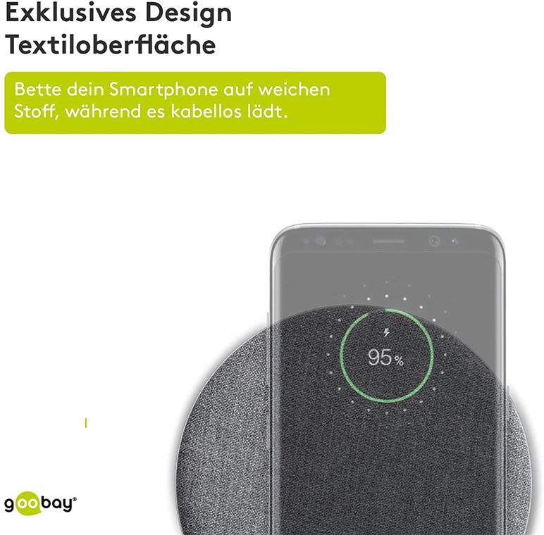 • Das elegante Design des Goobay-Induktionsladegeräts wird durch die exklusive Textiloberfläche abgerundet.