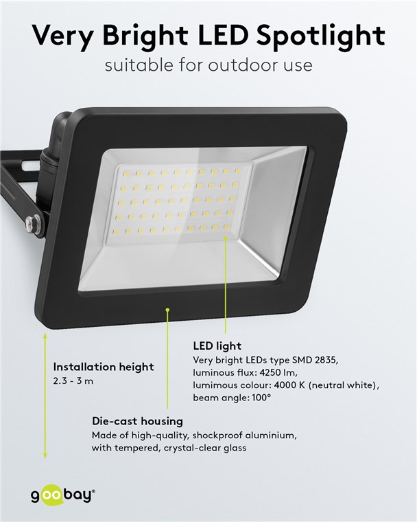 • LED-Außenbeleuchtung mit großem 100°-Abstrahlwinkel ist ideal als Gartenstrahler oder zur Beleuchtung von Fassaden geeignet.