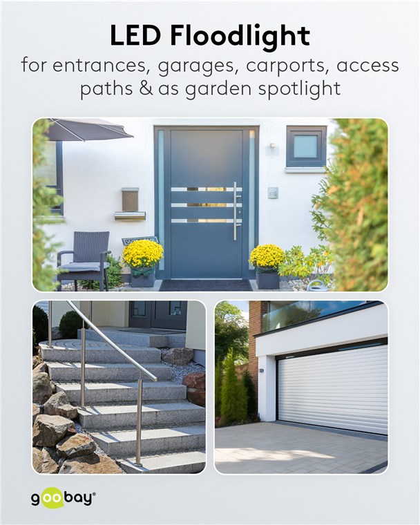 • Sehr heller und funktioneller LED-Strahler in kompaktem Design für Hauseingänge, Garagen, Carports, Fassaden und Zugangswege