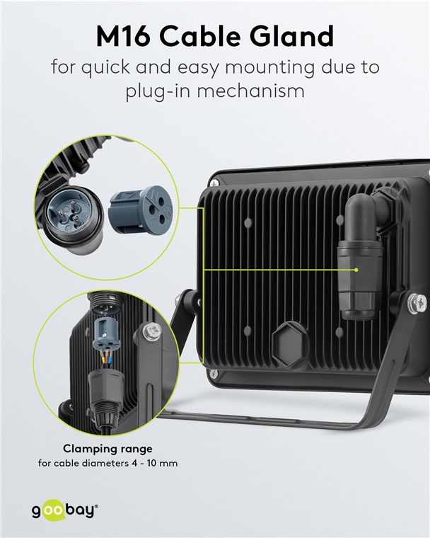 • Schnelle und einfache Montage dank praktischer M16-Kabelverschraubung mit Steckfunktion für Klemmbereich, Kabeldurchmesser 4-10 mm