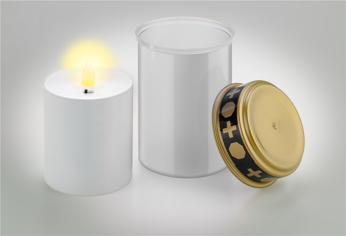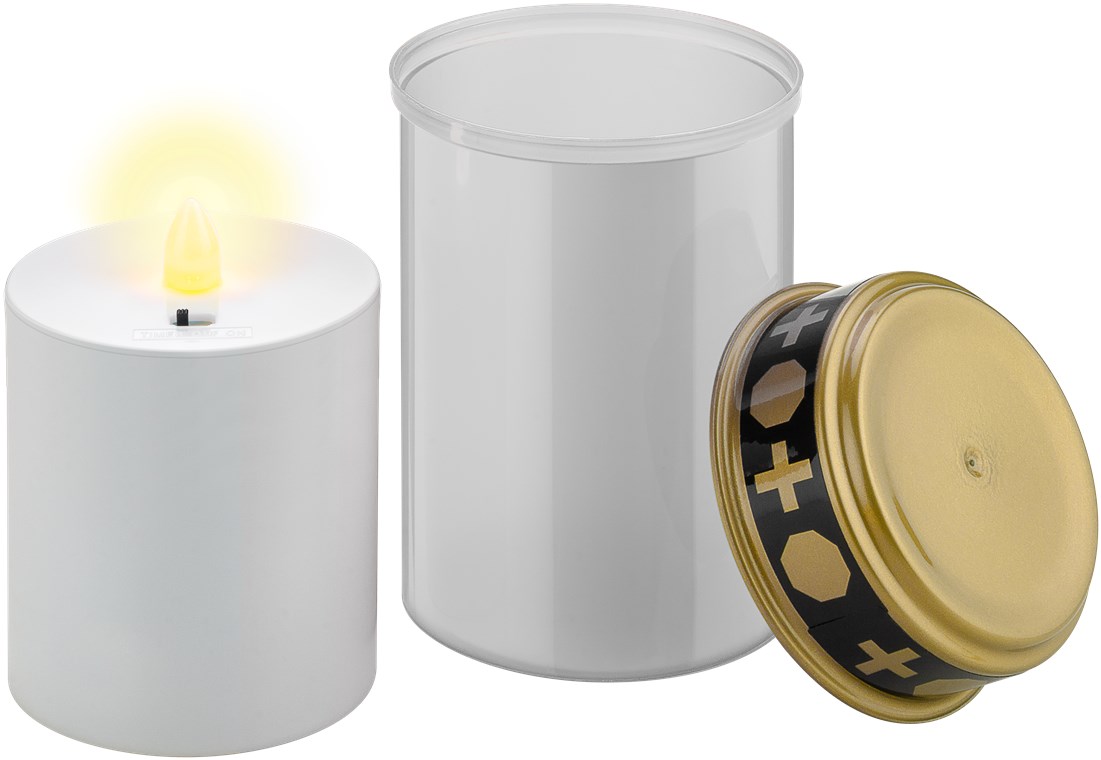 - Der wetterfeste Deckel schützt das Trauerlicht vor Feuchtigkeit, sodass es direkt auf dem Grab oder in einer Grablaterne platziert werden kann