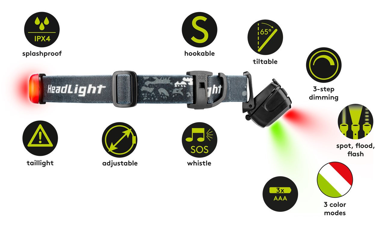 - mit praktischen Zusatzfunktionen: Haken zum Aufhängen, Pfeife für Notfälle und rotes Sicherheitsrücklicht mit 2 Leuchtmodi (Dauerlicht, Blinklicht)