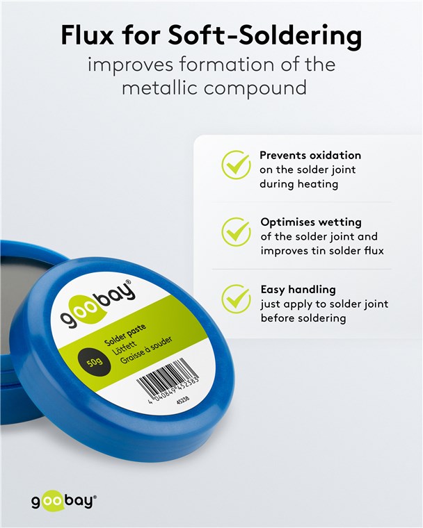 - Das Lötfett hilft schnell und effektiv, altes Lot zu lösen und neue, saubere Lötverbindungen zu schaffen