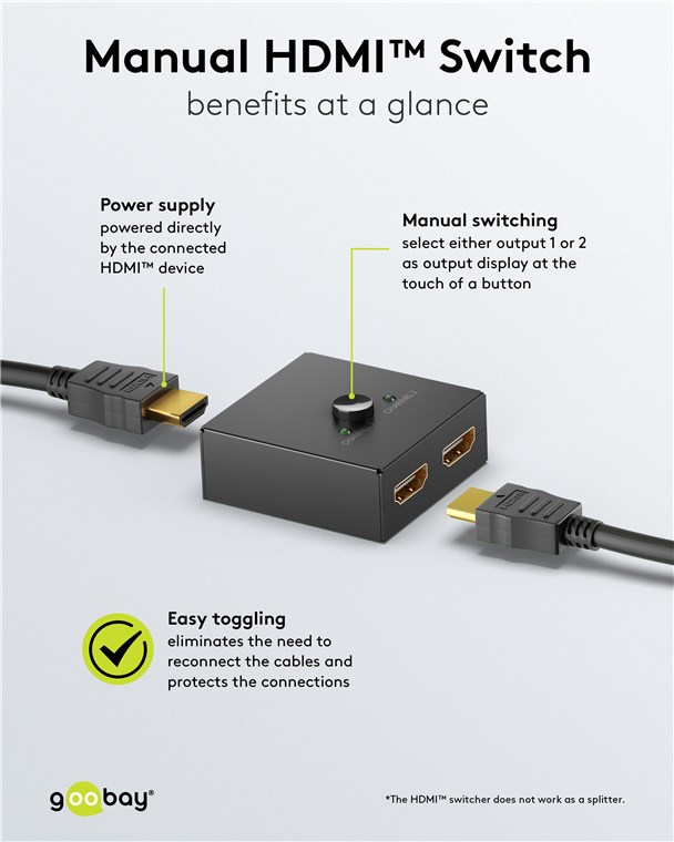 • Die HDMI™-Switchbox 2x1 wird ohne externe Stromversorgung direkt über das angeschlossene HDMI™-Gerät betrieben