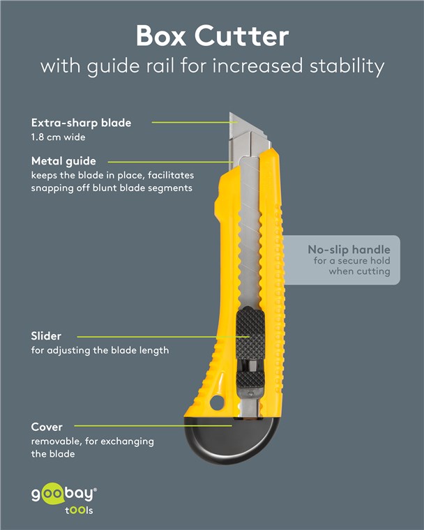 - Zuverlässiges, scharfes Cuttermesser zum Schneiden von Materialien wie Karton, Klebeband, Fotos, Folie, Weichholz oder Papier