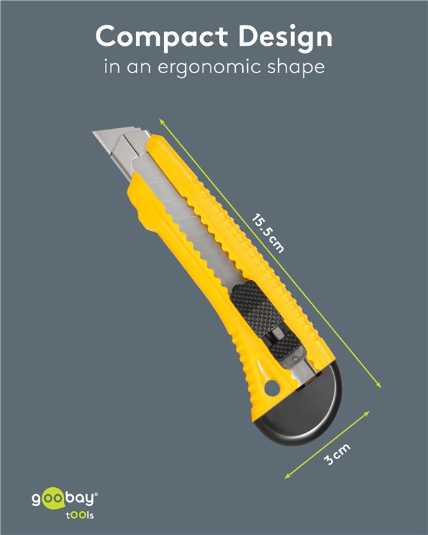 - Stufenweise einstellbarer Klingenaustritt mit einrastender Arretierung für einen festen Halt der Klinge auch bei hoher Belastung - für sicheres Arbeiten ohne Verletzungsrisiko
