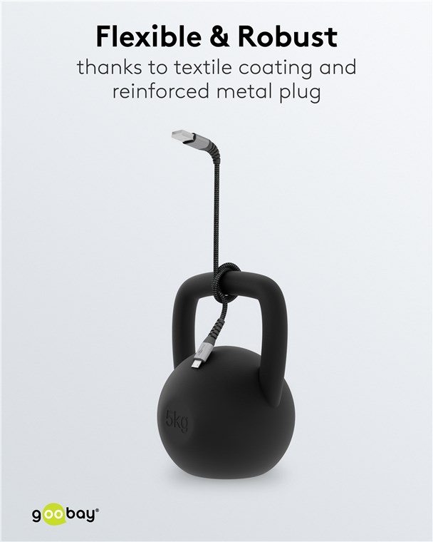 • Der geflochtene Textilmantel des USB-Ladekabels bietet eine angenehme Haptik und ist schonend auf sensiblen Oberflächen.