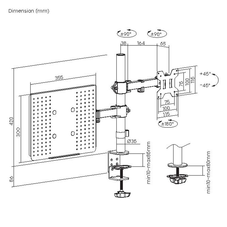 - Perfekt für die stabile Tischmontage eines Bildschirms bis 10 kg und eines Laptops bis 4 kg, höhenverstellbar, ±90° schwenkbar und ±45° neigbar, ±180° Rotation, empfohlene Tischplattenstärke: 10-85 mm