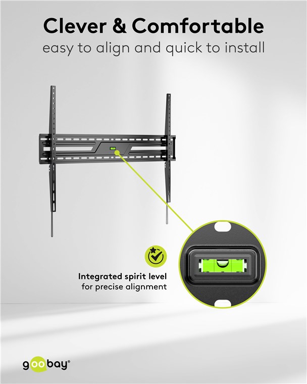 - Die integrierte Wasserwaage sorgt für eine präzise Ausrichtung und eine einfache Installation des Fernsehers