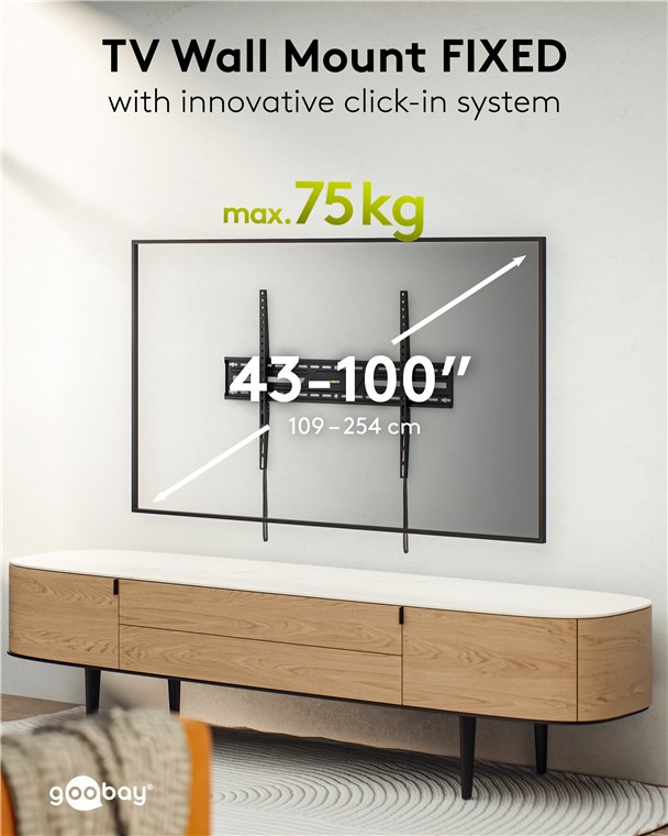 - Extrastark und extraflach: Die TV-Halterung überzeugt mit bis zu 75 kg Traglast und einer besonders platzsparenden Aufhängung mit nur 30 mm Wandabstand