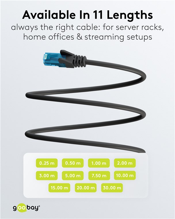 Eine CATegorie für sich: Mit ihrem weichen TPE-Mantel sind die CAT-Kabel deutlich flexibler als herkömmliche Kabel mit PVC-Ummantelung – für eine verbesserte Handhabung und eine superweiche Haptik. Zieh deinem alten PVC-Kabel den Stecker und setze auf TPE – im Homeoffice, Server-Rack oder Streaming-Setup.