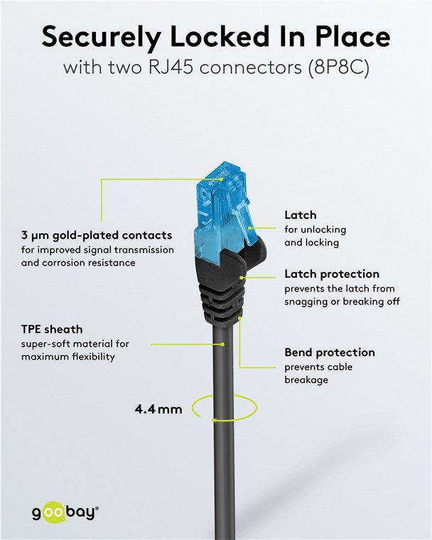 - Sicher eingerastet: Der Rastnasenschutz am RJ45-Stecker verhindert das Verhaken oder Abbrechen der Rastnase