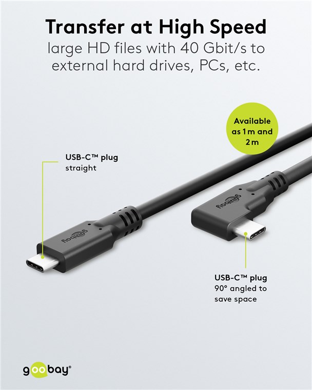 - Bis zu 40 Gbit/s sorgen für eine blitzschnelle Datenübertragung – damit ist das USB-C™-Kabel 8x schneller als USB 3.0 und perfekt für NVMe-Festplatten, HD-Filme, Serien, Musik und Fotos