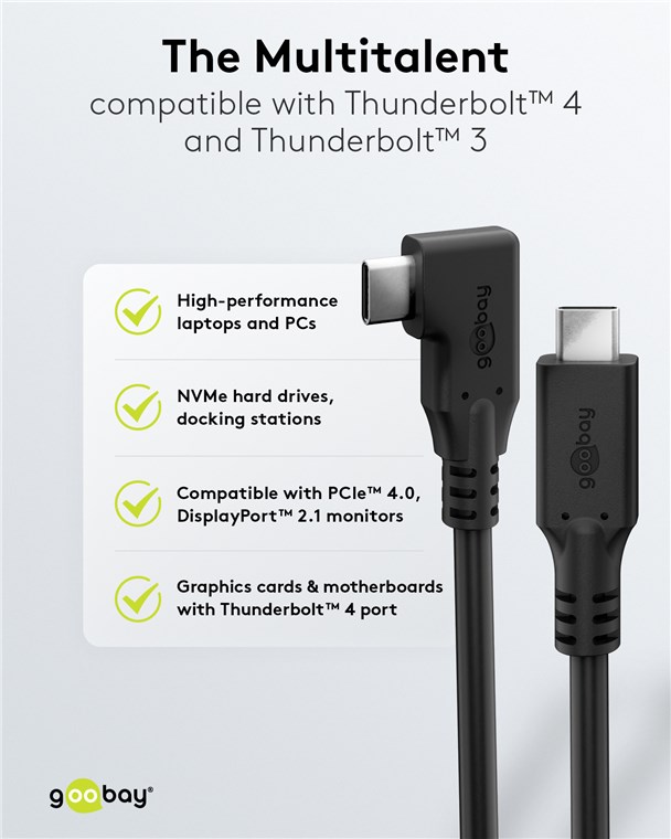 Energetische Höchstleistungen und pulsierende Datenströme, die die Herzen aller Nutzer elektrisieren: Mit einer Power von 240 W und Datenraten von 40 Gbit/s hängt das Kabel alle bisherigen USB-Verbindungen gnadenlos ab. Ob High-Performance-Laptops, leistungsstarke Dockingstationen, Grafikkarten oder Mainboards mit Thunderbolt™ 4-Anschluss – mit seiner exklusiven Leistung wird das USB4™-Kabel zur Lebensader aller modernen Netzwerke.