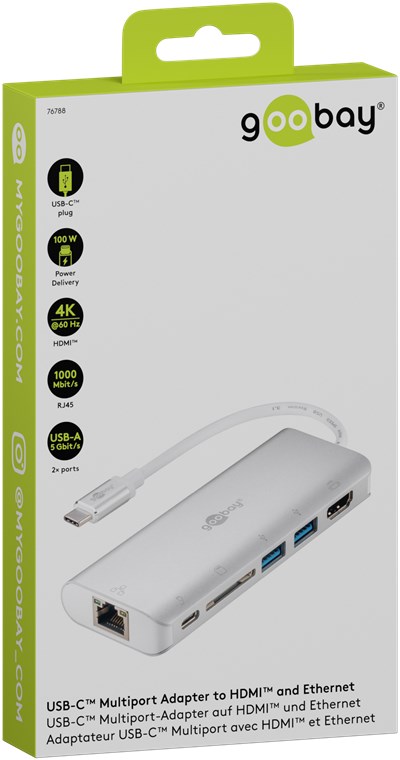 USB-C™-Multiport-Adapter auf HDMI™, USB-A, Cardreader, RJ45, Aluminium, silberfarben