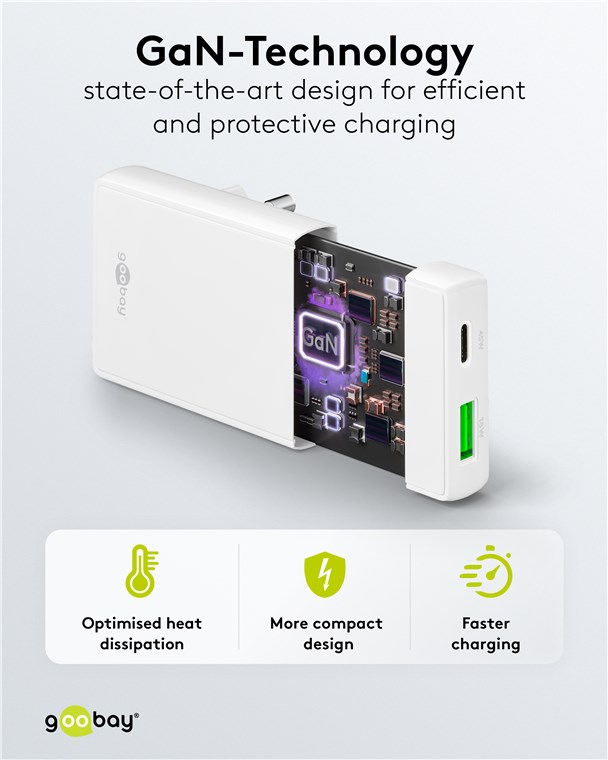 - Halbleiter mit GaN-Technologie ermöglichen schnelleres und effizienteres Laden und eine leichtere, kompaktere Bauweise im Vergleich zu einem herkömmlichen Ladegerät