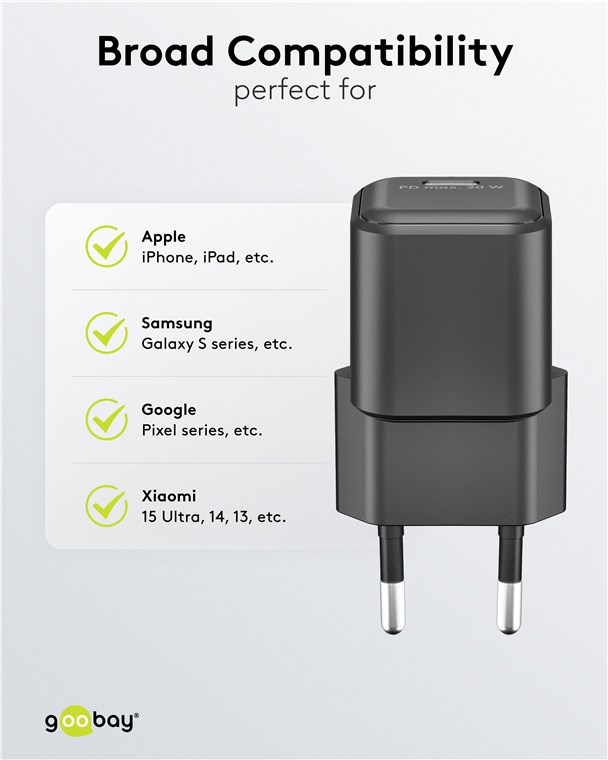 - Mit 20 W Leistung ist der Ladeadapter speziell auf kleine Geräte wie Smartphones, Bluetooth-Kopfhörer, Tablets oder Powerbanks zugeschnitten