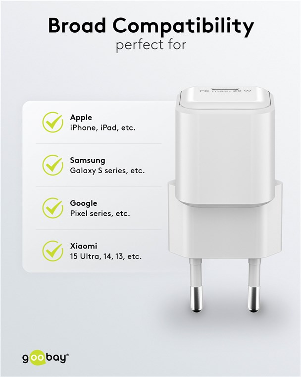 - Mit 20 W Leistung ist der Ladeadapter speziell auf kleine Geräte wie Smartphones, Bluetooth-Kopfhörer, Tablets oder Powerbanks zugeschnitten