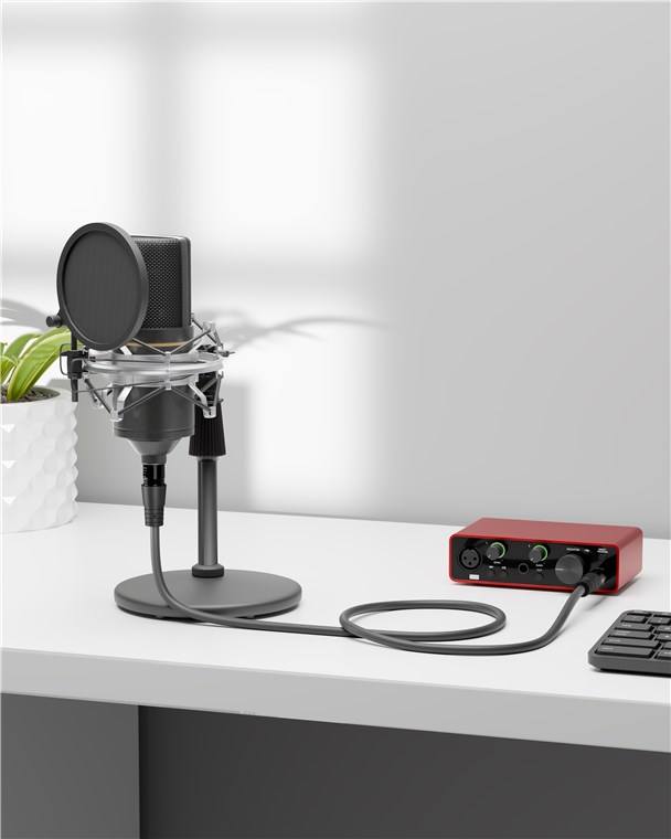 - Flexibles XLR-Kabel für analoge Audioübertragungen, z. B. im Musikstudio oder Proberaum, als Mikrofonkabel beim Aufzeichnen von Podcasts und Live-Streaming