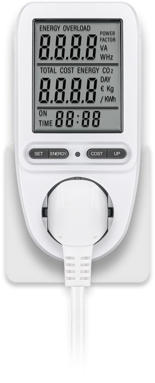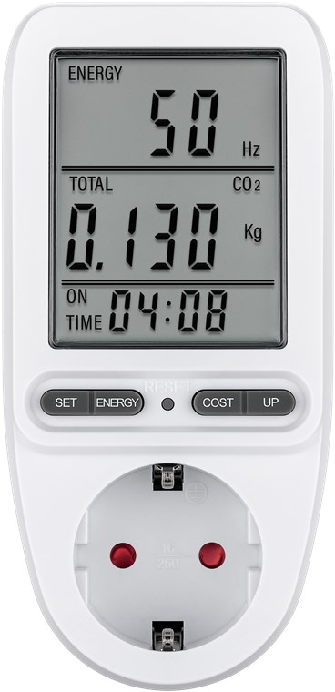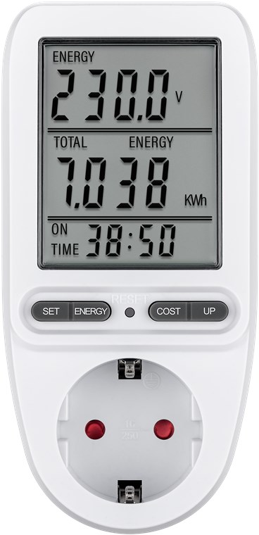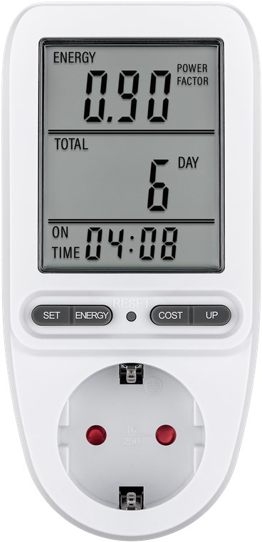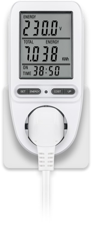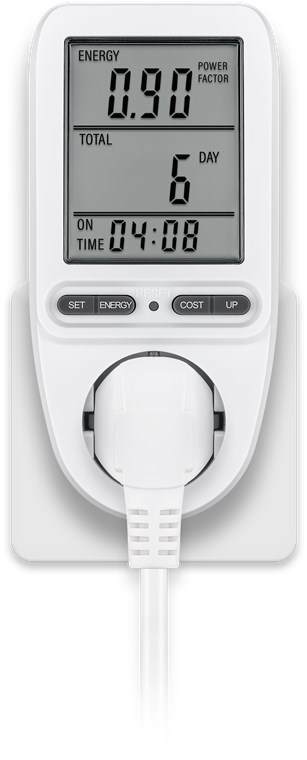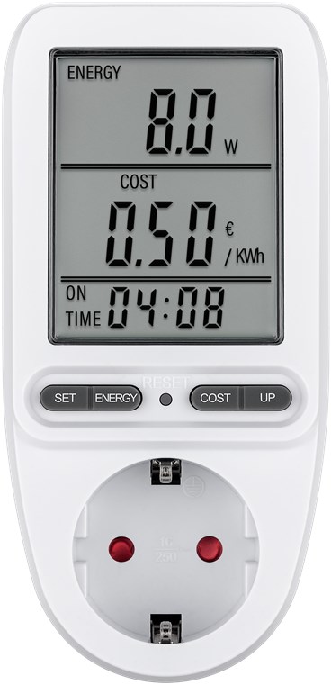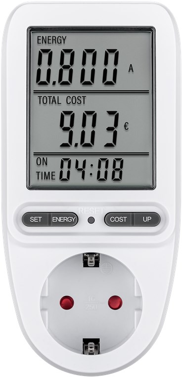 - Power meter socket to calculate the running costs of household appliances and determine the savings potential, e.g. for refrigerators, washing machines, computers, televisions and floor lamps