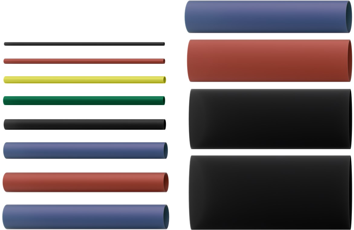 - Heat-shrink wire tubing with a 2:1 shrink ratio, designed for cable insulation, cable repair and cable protection in electrical and electronic applications