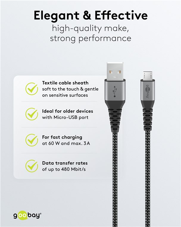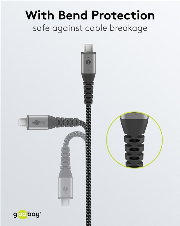 - The Goobay Micro-USB charging cable for fast charging with a maximum of 3 A.