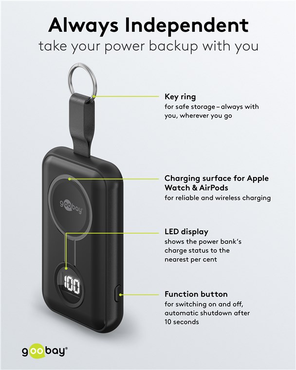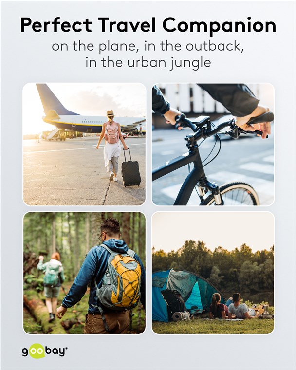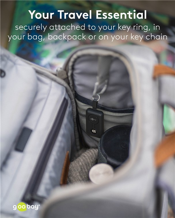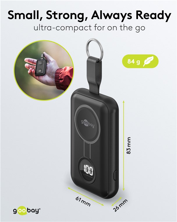 - Independent on the go: The mini power bank charges wherever there are no cables or mains sockets available, e.g. on the way to work, on the train or on hikes in the countryside