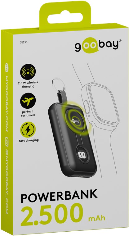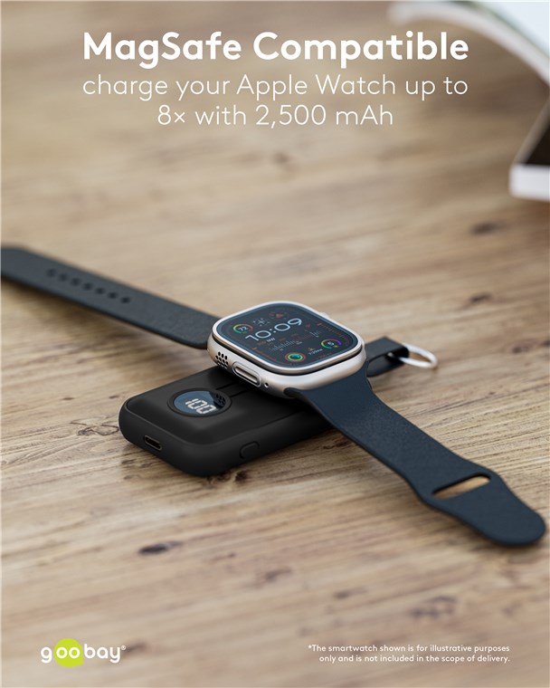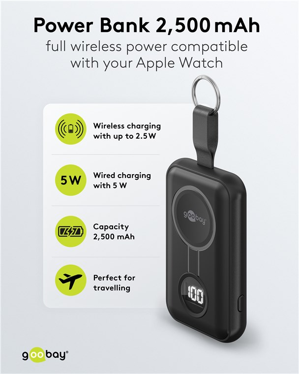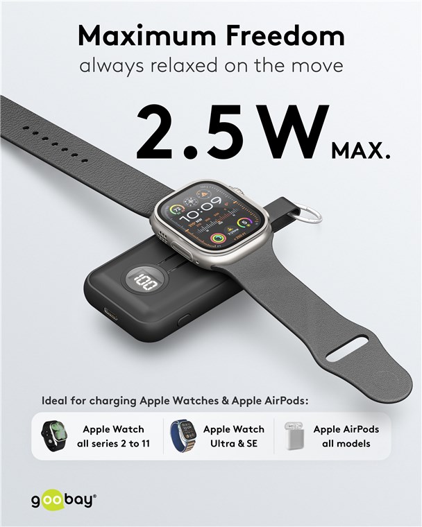 - Ideal output for the Apple Watch: 2,500 mAh for up to 8x charging (depending on model) – wireless with up to 2.5 W and extra fast via cable with up to 5 W