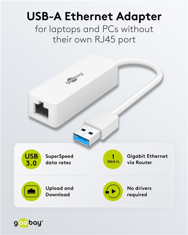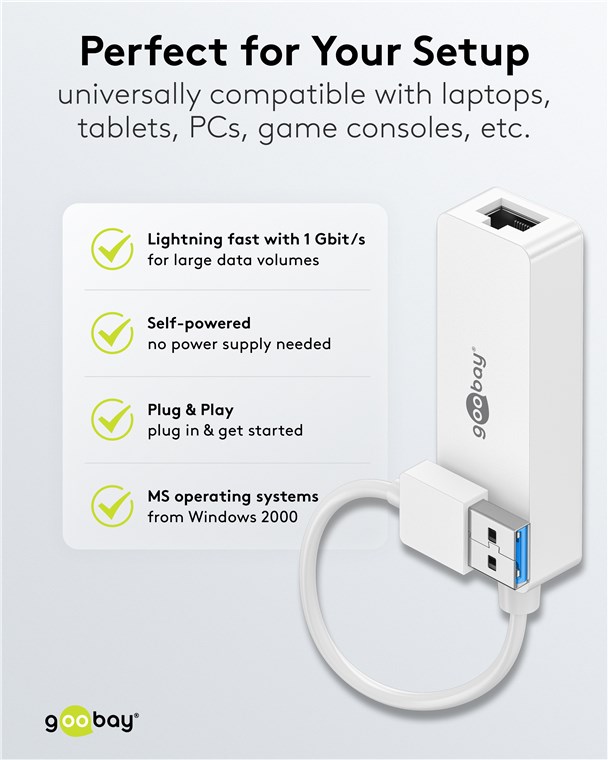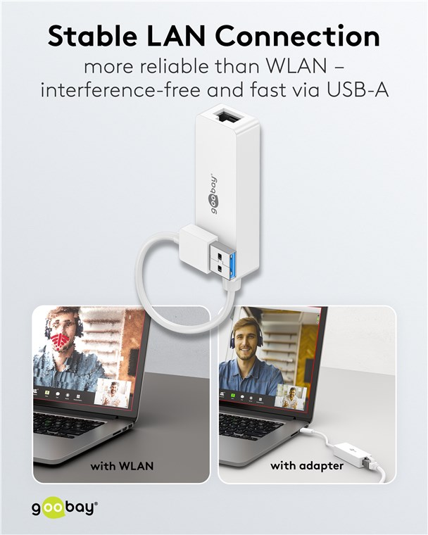 L'Internet filaire est moins perturbé que le WLAN, mais l'ordinateur portable ne dispose pas de son propre port Ethernet ? L'adaptateur LAN-USB pratique relie l'ordinateur en tout confort à un câble réseau existant. Pour les jeux en ligne, les appels vidéo et le streaming avec Gigabit Ethernet – sans lag ni problèmes de connexion. Câblage rapide, streaming sûr !