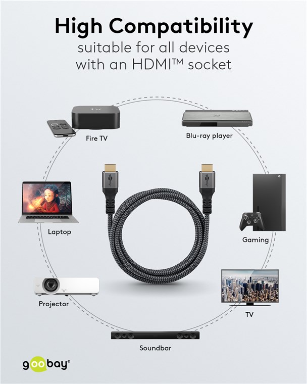 La série Plus de Goobay avec des connecteurs au design métallique fin et élégant en Sharkskin Grey. Le câble HDMI ultramoderne atteint des valeurs de pointe en termes de résolution et de vitesse de transmission et est également parfaitement adapté aux fonctions exigeantes comme ARC, HDR et les contenus 3D.