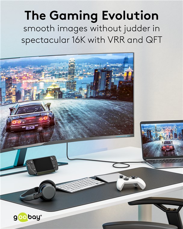- Ultra haute résolution : Jusqu'à 16K @ 60 Hz/8K @ 240 Hz (DSC) garantissent des images fluides et d'une netteté exceptionnelle, même sur les grands téléviseurs et les écrans grand format des scènes ou des stades