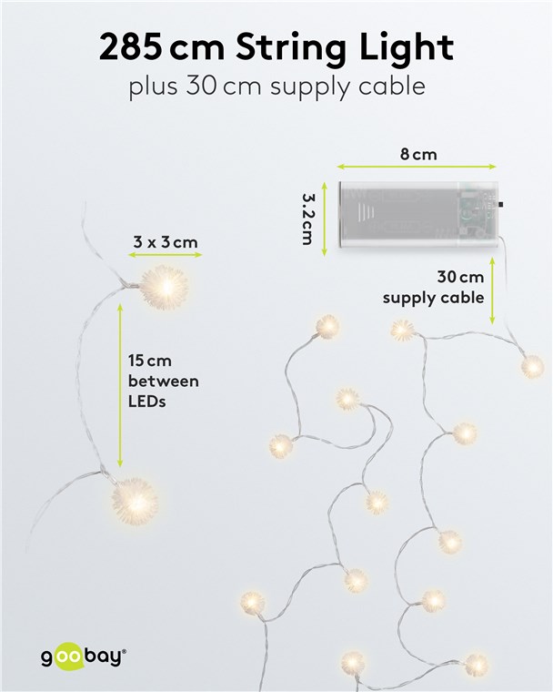 - Longueur totale : 3,15 m, câble d'alimentation : 30 cm, distance entre les LED : 15 cm, câble transparent