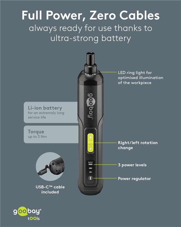 - Confort total : La poignée caoutchoutée du tournevis électrique garantit une prise en main agréable, même lors d'utilisations prolongées