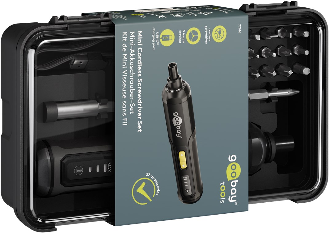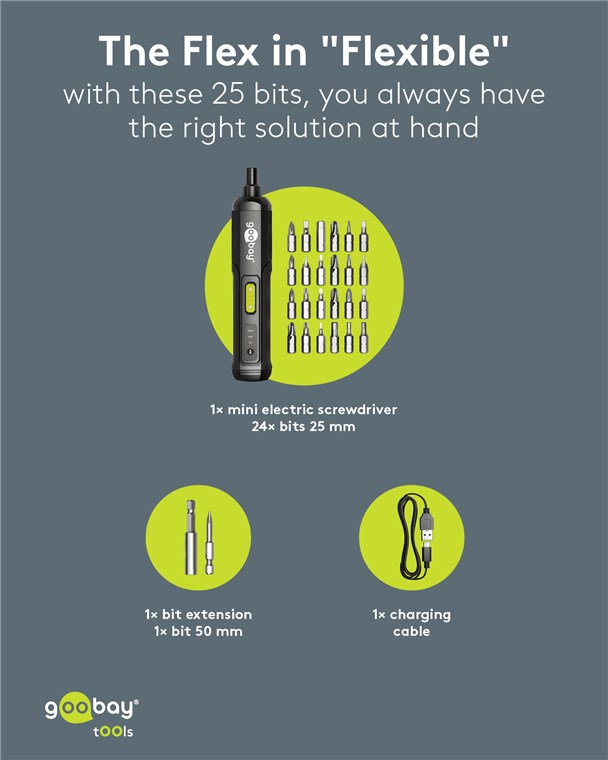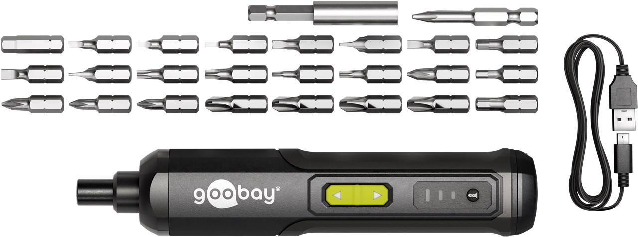 25 embouts, boîte de rangement, câble de charge USB-A vers USB-C™, rallonge pour embouts, Visseuse sans fil