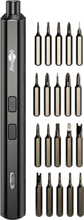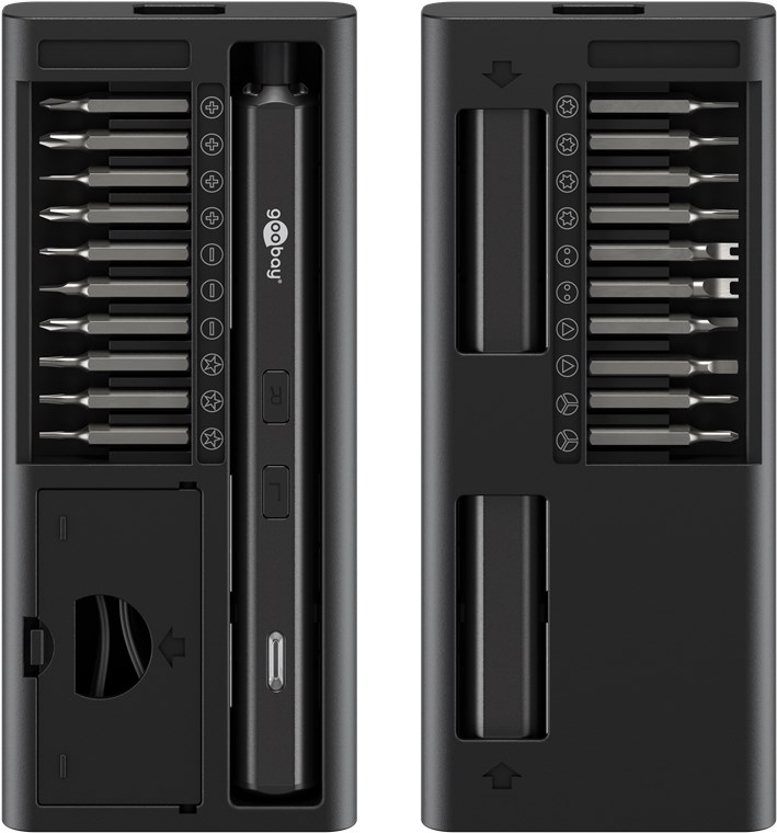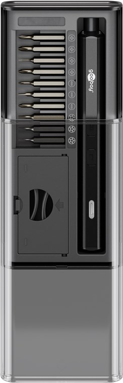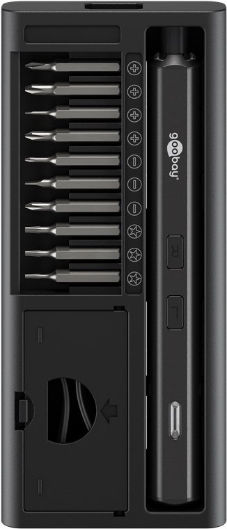 20× 28 mm embouts, boîte de rangement, câble de charge USB-A vers USB-C™, Poignée de tournevis avec support magnétique