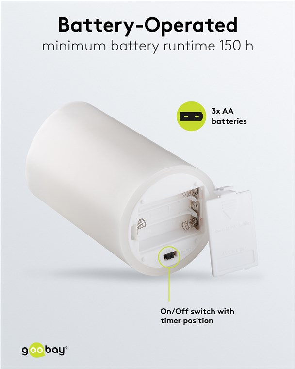 - Dimensioni (A x Ø): 15 x 10 cm, alimentato da 3x batterie AA (non incluse)