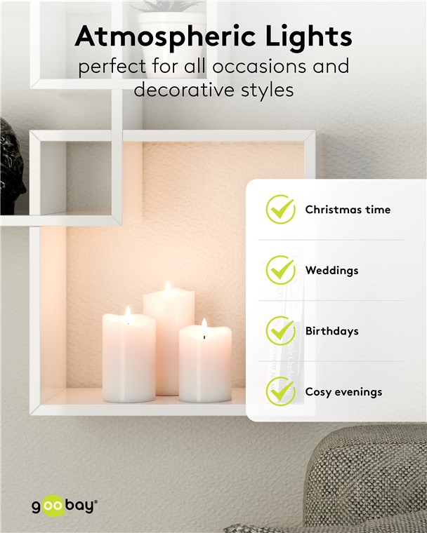 - Le luci a LED sono la soluzione di illuminazione sicura, senza rischio di incendio per persone e animali, adatta a tutte le aree in cui le candele vere e proprie sono troppo pericolose o non consentite