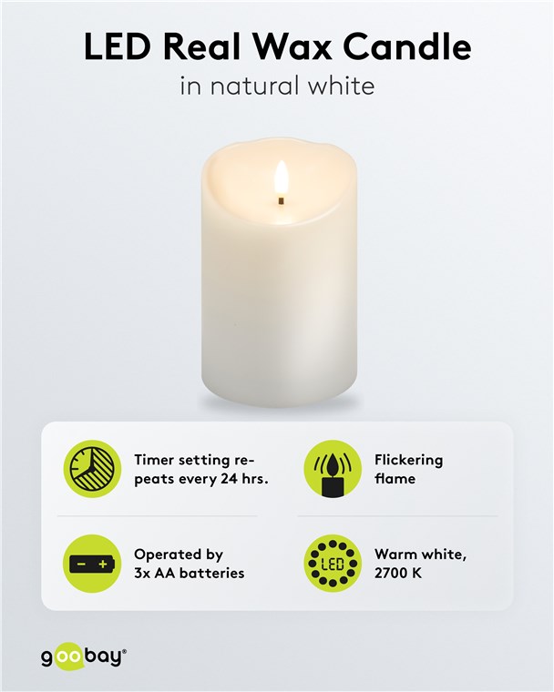 Candela a LED in vera cera, bianco, 10 x 15 cm